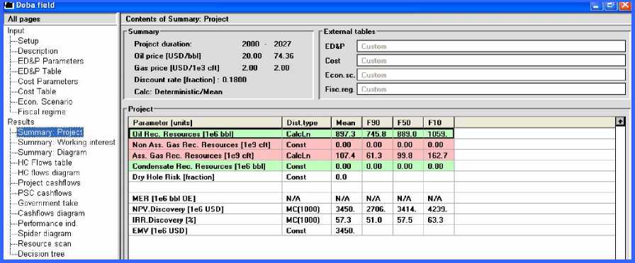 “Printscreen” of other results given by GeoX (for both Doba and Kubla):