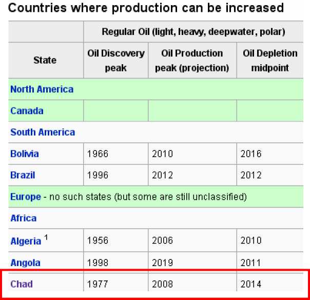 According to Oil and Gas Journal (OGJ), Chad had proven oil reserves of 1.5 billion barrels as of January 2006. International oil companies first discovered oil in the early 1970s in southern Chad in the Doba and Lake Chad basins. However the production does not start until recently (2003), due to the continuous political instability in Chad. The projected peak production will be in 2008 and the oil depletion mid-point will be in 2014 (refer to the following figures for detailed information).