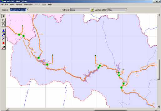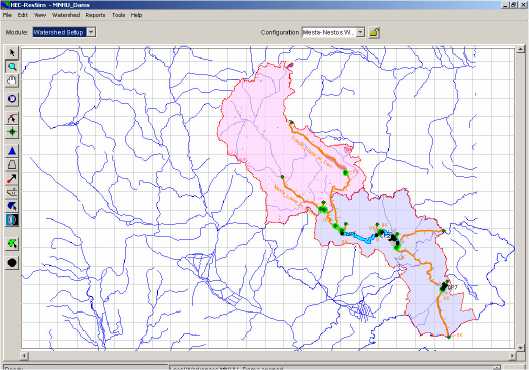Figure IV.4: Watershed Setup and Network Forms (ResSim display)