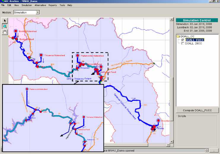 The simulations run in order to evaluate the behavior of the dams’ system involve several models, if the transformation of the initials data is taken into account. But the primordial model that must be part of the study is a model able to establish the functioning of the dams: the ResSim model and software has been chosen in this analysis.