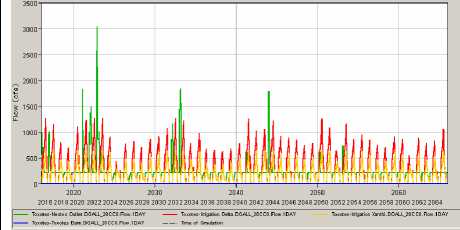 For a better prediction of the dams’ system, it is necessary to estimate the quantity of water that each irrigation set (delta and plains) represents and to bring this data into line with the flow that can be taken away from the river.