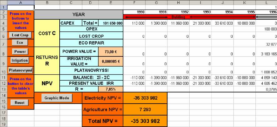 We used for the NPV criterion average value of the cash flows generated by the irrigation incomes in the four simulations, in order to establish a representative mean value.
