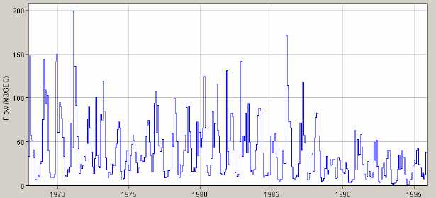 Figure IV.2: Monthly flow observed at Temenos (HEC-DSSVue display)